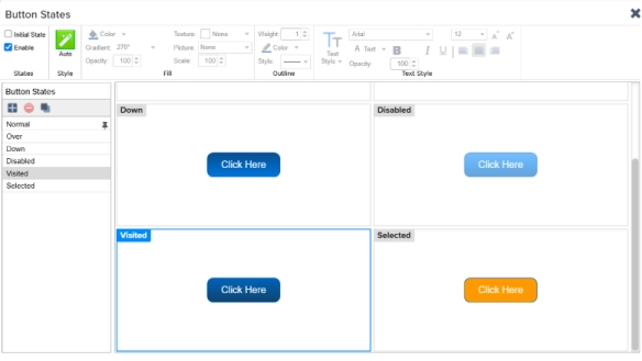 A new Enable option is available for Visited, Selected, and Custom button states that gives you full control over when each state is used, or not used, in your design.