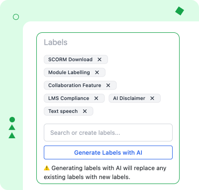 - Add up to 10 manual labels or let AI suggest up to 4 relevant labels per module.