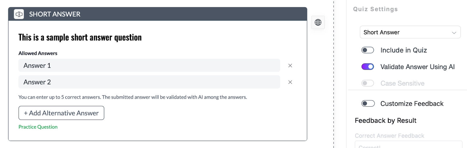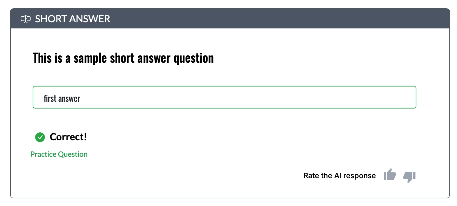 Short-answer questions now include AI-powered evaluation and personalized feedback for learners.