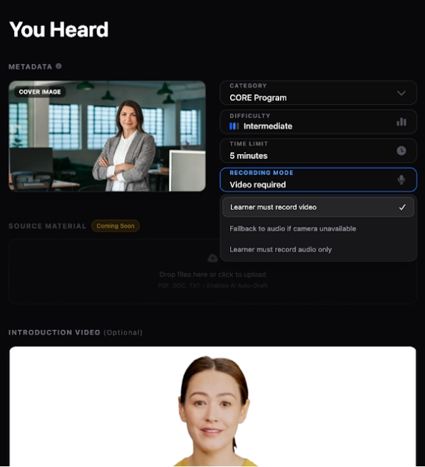- Learner must record video — existing default behavior, unchanged
