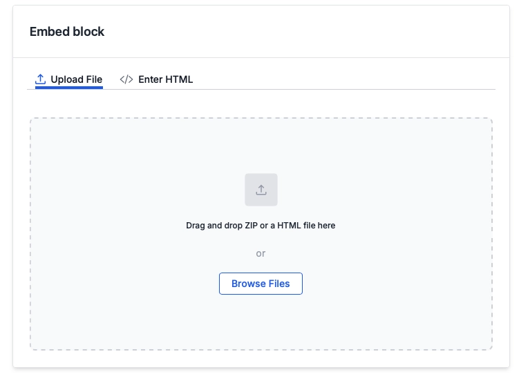 - Upload a single HTML file for quick integration.